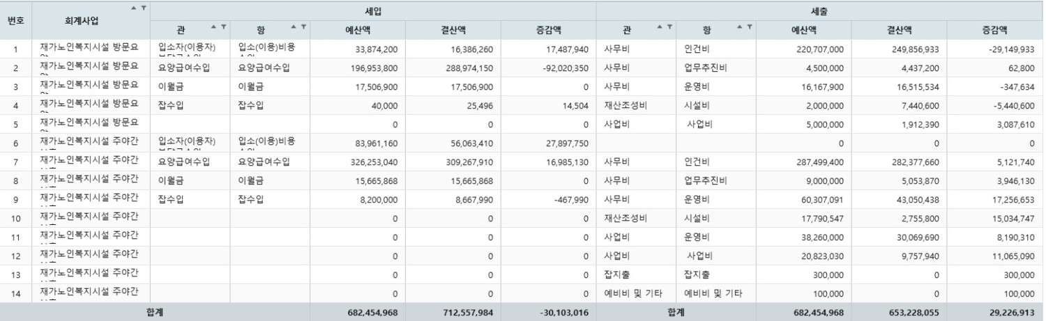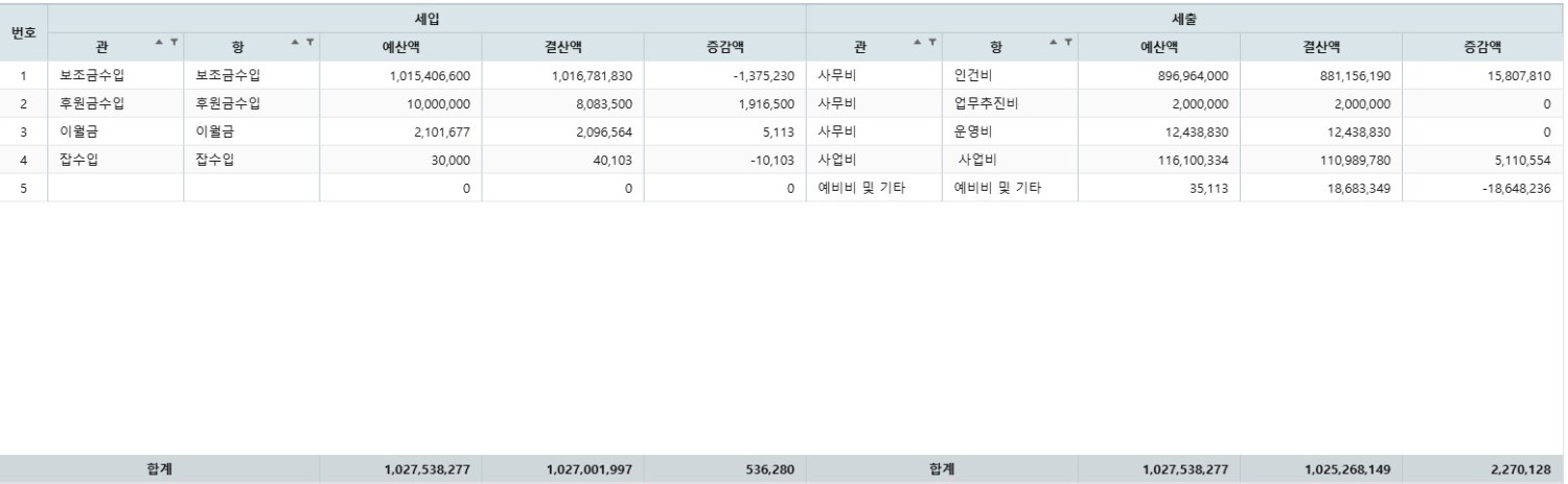 2025년 세입·세출 결산보고 작성자관리자 등록일2026.04.17 조회수3 2025년 보조금 / 장기요양 세입 · 세출 결산 총괄표 목록보기 PREV . NEXT 2026년 본예산 세입·세출 총괄표