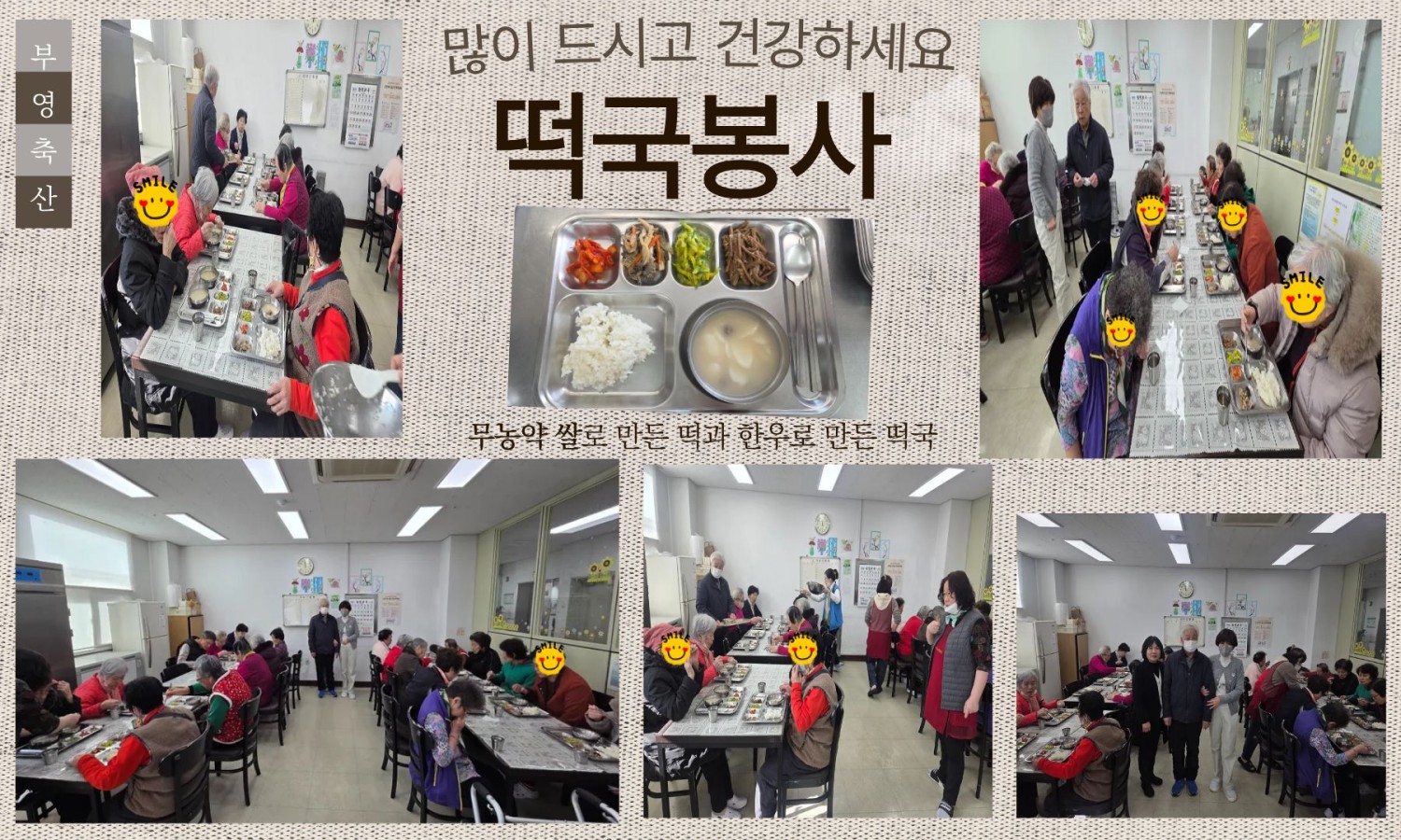 2025년 12월 5일 부영축산 권부영 회장님께서 주간보호 어르신들께 국산 무공해 햅쌀로 만든 떡국떡과 한우로 맛있는 떡국을 나눔해주셨습니다.